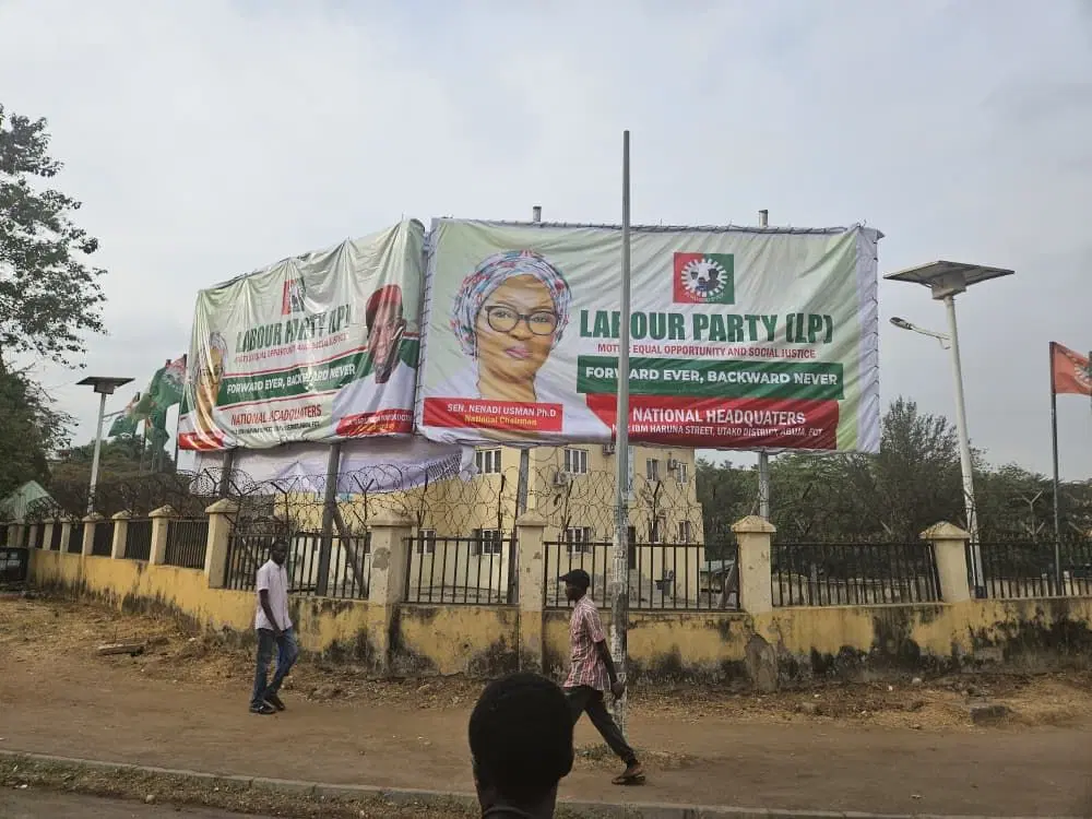 The Labour Party National Headquarters in Abuja is witnessing a seismic shift in leadership, with banners bearing the image of Senator Nenadi Usman now adorning the building. This physical restructuring replaces the imagery of the embattled former chairman, Julius Abure, signaling a decisive takeover of the party facility by the Usman-led faction.